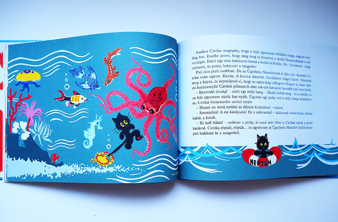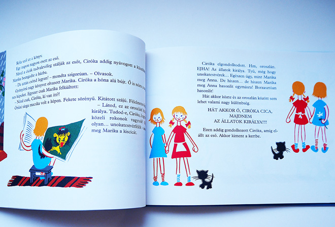 ハンガリー作家ガーボル・エヴァの絵本。百獣の王に憧れている黒猫のチローカが遠い親戚のライオンを探す冒険物語。小さくて可愛らしい子猫がアフリカやサーカス会場、海までライオンのようになるために旅をする。ハンガリーらしいカラフルでノスタルジックなイラストが可愛らしい。