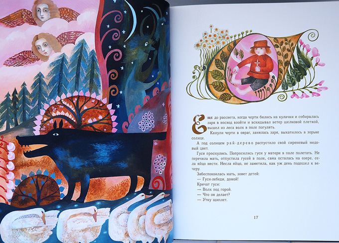 ロシアの詩人アレクセイ・レミーゾフが書いた6つのおとぎ話にロシアの人気グラフィックアーティスト、ヴェーラ・パヴロワがイラストを描いた一冊。全カラーイラストで、ほぼ1ページ毎と、全ページを使ったイラストが11点で構成。グラフィカルで色彩豊かな美しい絵、画集のように堪能できる一冊。